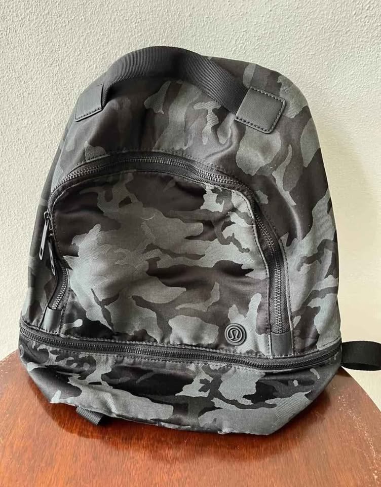 Great quality authentic Lululemon backpack in dark camo print. Durable, lightweight, and comfortable to carry with adjustable straps. Multiple zip compartments and mesh interior pockets for easy organization. Perfect for everyday use, gym, work, school, or travel.