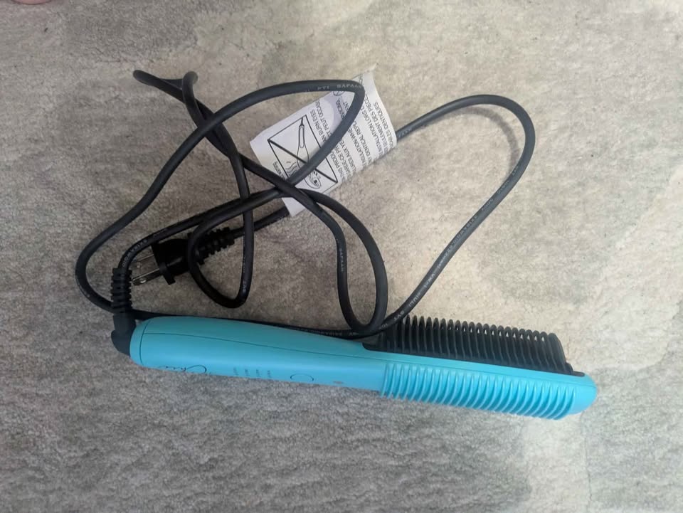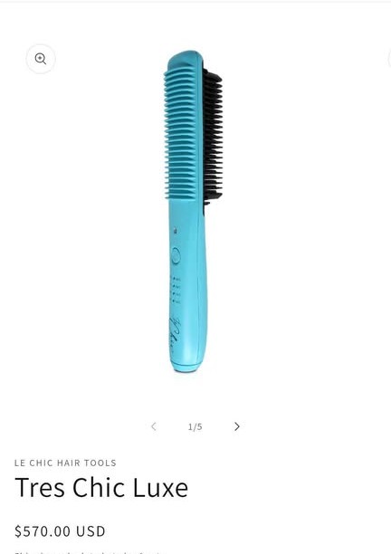 This premium Très Chic Luxe heated ionic comb uses negative ion technology and ceramic bristles to smooth, straighten, and add shine while helping seal in natural moisture. The unique triangular shape allows you to style close to the roots safely, while rounded edges make it great for soft curls and waves too.
